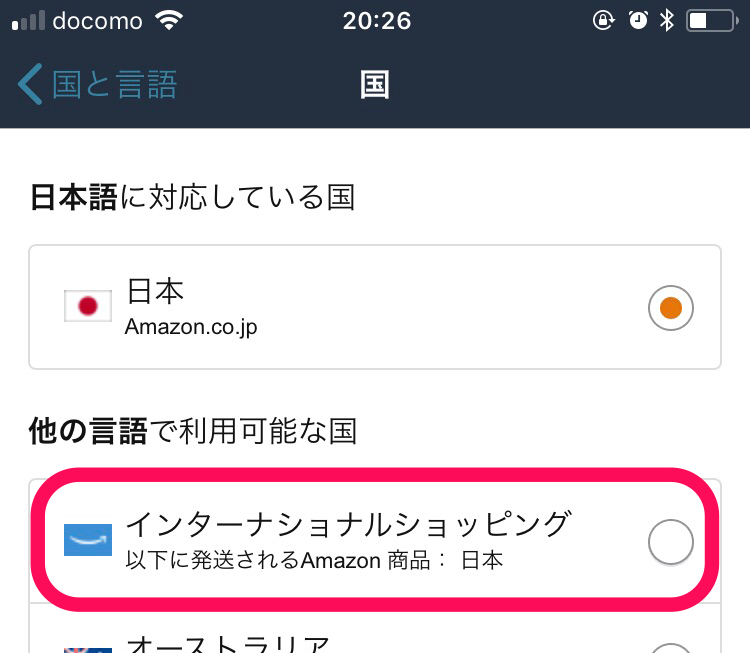 - アプリ上で国の設定を変えると米Amazonの商品に切り替わるが、英語表記にしか対応していない